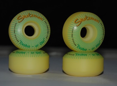 Major car manufacturers like Volvo, Jaguar and Triumph plunge into the skateboard business – just as it is about to go belly-up in the early 80s, as does Mattel (Barbie doll) Toys, In this game called evolution, some die – some survive (mutate and procreate). Ever hear of the extinct "mouse board" or the V-angled "Wheelee Board"?. . . They're all in here, plus some unheard of breakthrough products like: